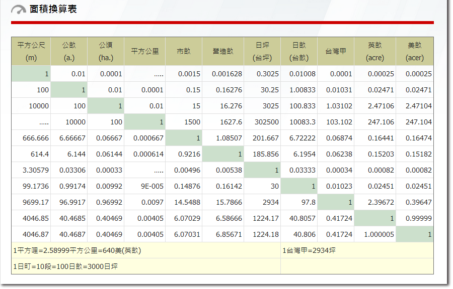 * 度量衡換算表等資料來源: 台北市度量衡商業同業公會 | 量測資訊網 | 單位換算轉換器