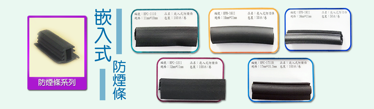 ■ 永裕有限公司 | 防煙條系列產品—系屬於防火門邊框上的高性能膨脹型防煙條。有自黏式防煙條及嵌入式防煙條系列產品。